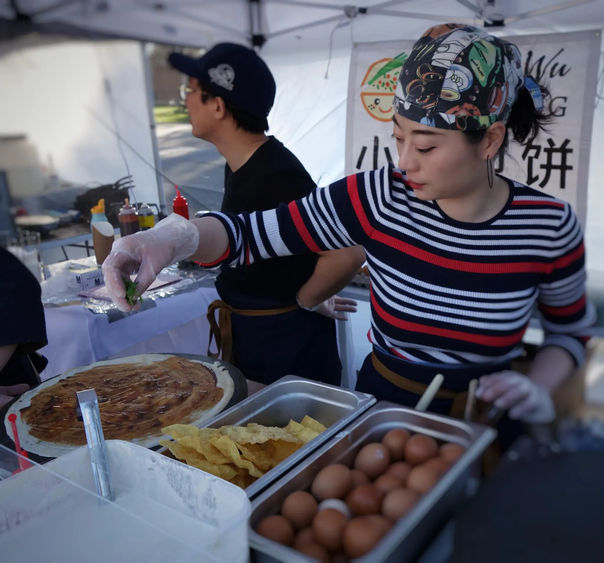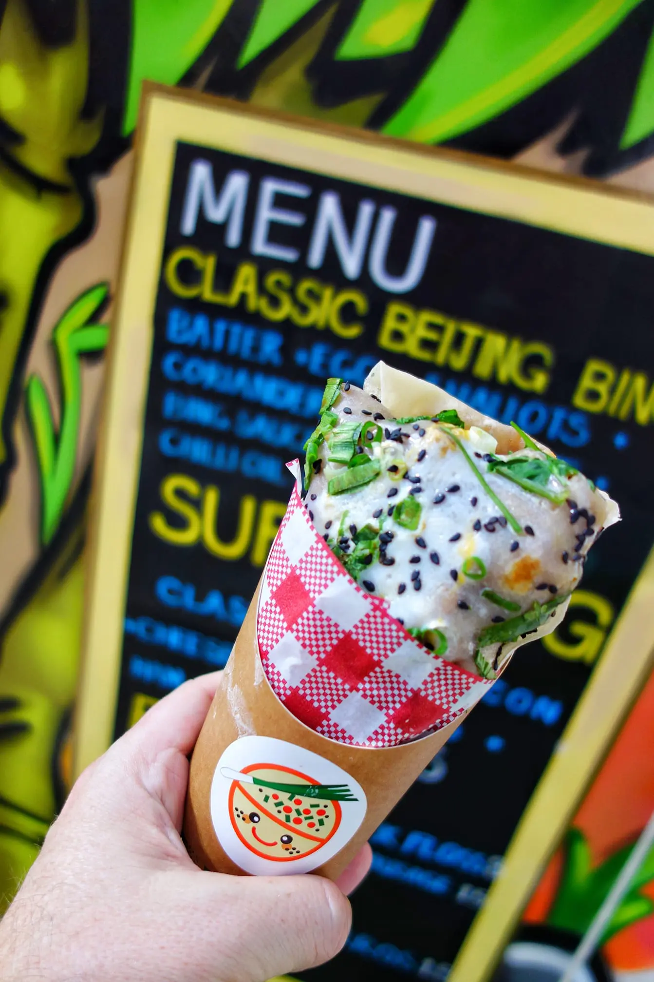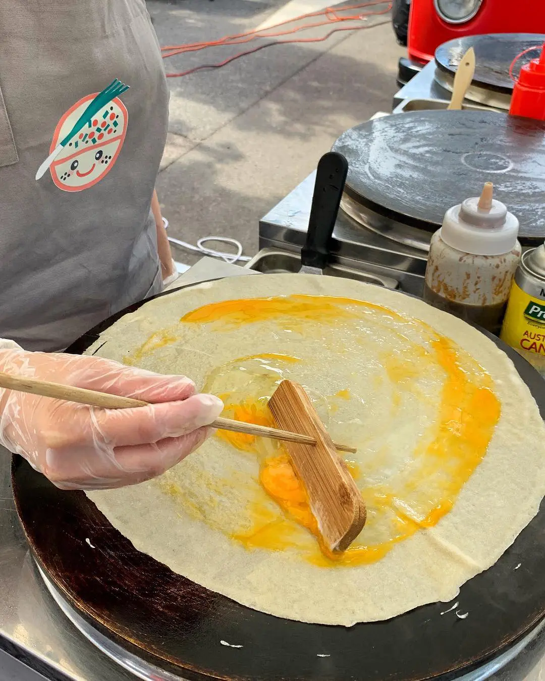 While we know crepes as a popular dessert option, have you tried savoury crepes? Chinese crepes in particular are a savoury treat and a popular street food in Beijing called Jianbing. Thanks to Little Wu Jianbing, we can enjoy this delectable snack at the Old Bus Depot Markets.