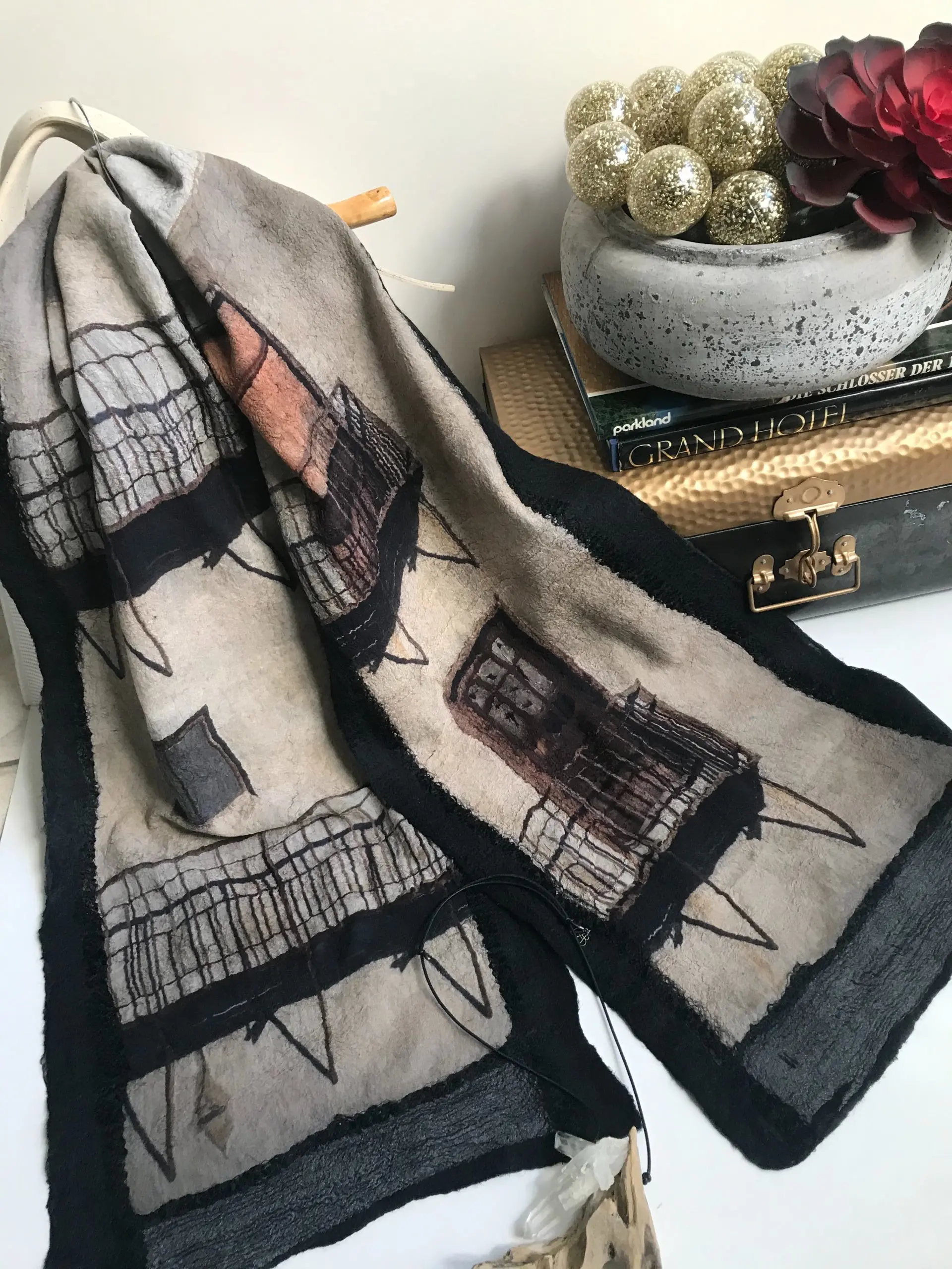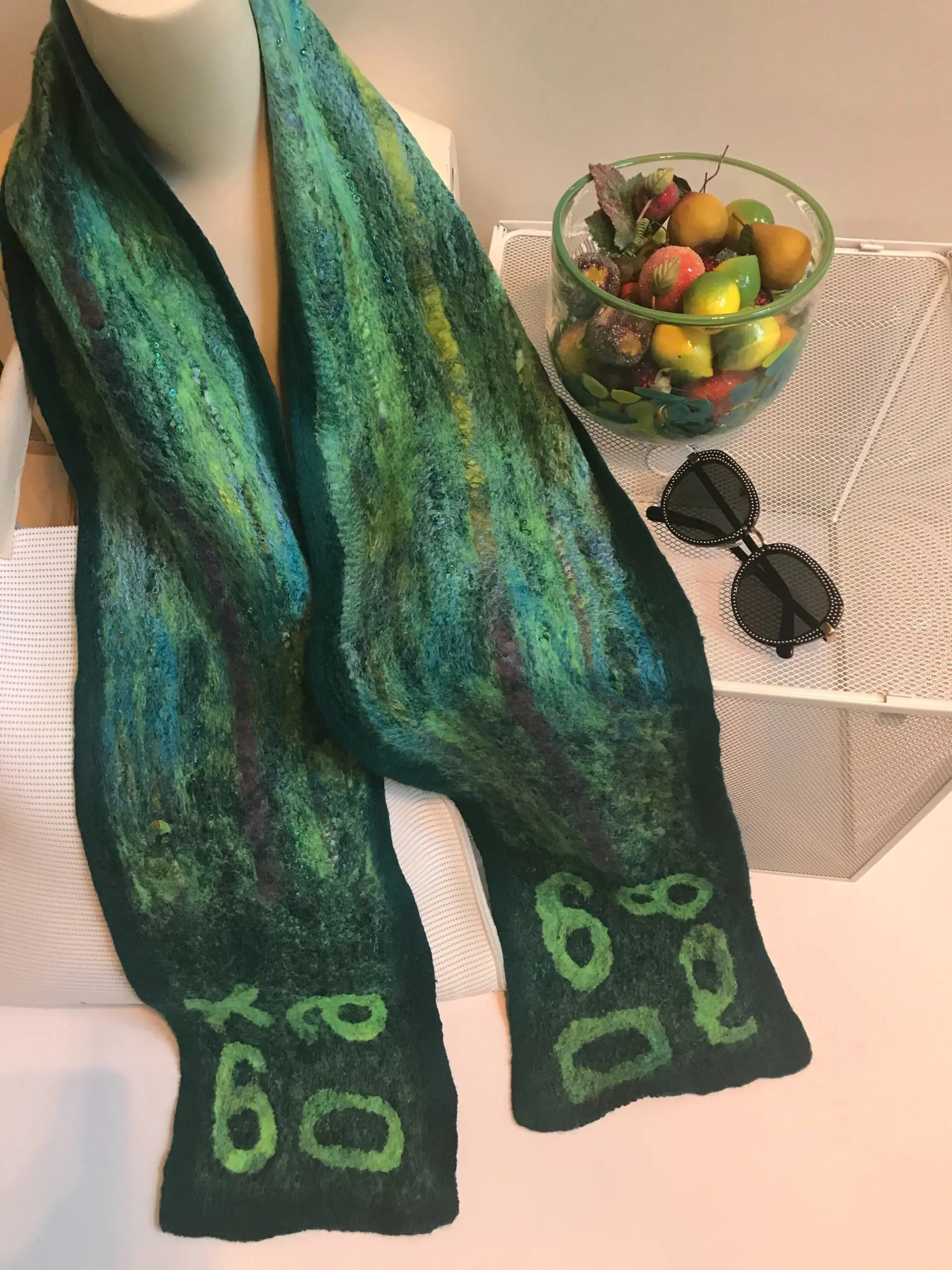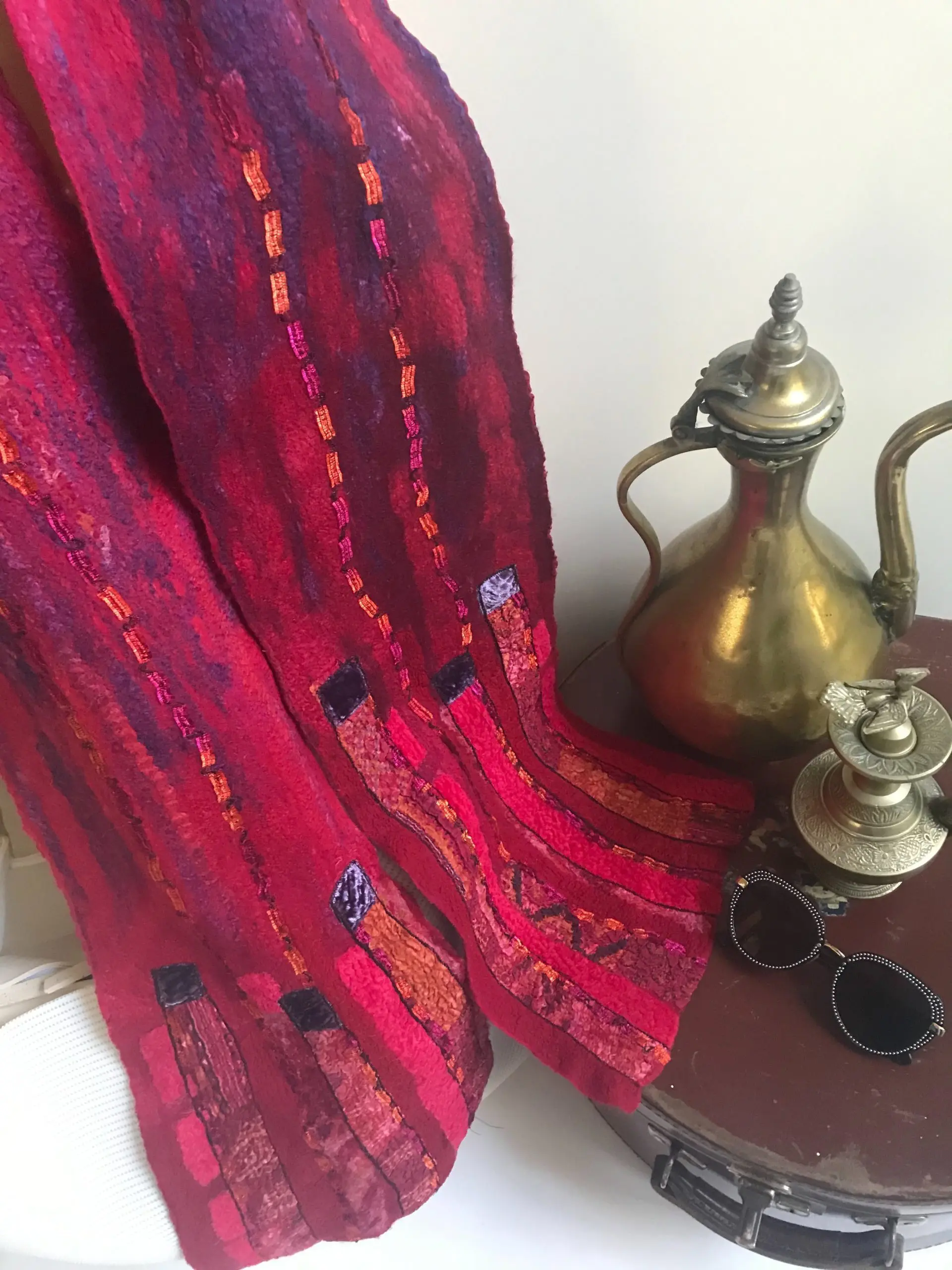Hand-rolled merino felted scarves, wraps and handbags incorporating silks, exotic fibres and yarns. Many are machine embroidered. Original design hand-painted silk scarves and products featuring Australiana themes. Machine embroidered silk painted bookmarks featuring Australian birds, Royal Bluebell and gum leaves.