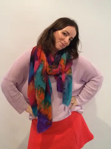 Locating wool fine enough to paint on with a suitable finish was difficult but eventually I discovered some and started selling Australian wool scarves to Australians – more difficult than silk. I made a shirt to promote myself, someone asked me to paint one for them and the shirt side of the business was up and running.