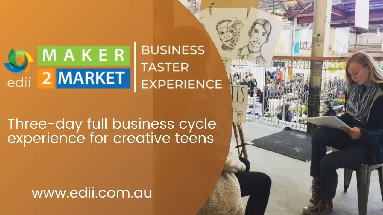 Edii’s Maker2Market Business Taster Experience is a three-day program that specializes in helping creative, young people aged 10-17 explore their entrepreneurial skills and mindset by experiencing a full business cycle that culminates in a real-world market day at Old Bus Depot Markets.