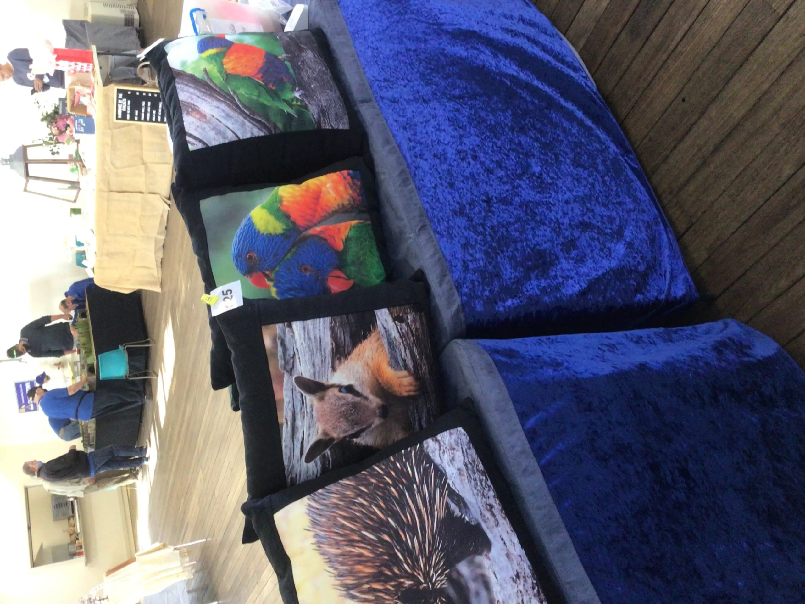 Quality cushions Overview All my products are handmade by me. The cushions have an Australian bird or animal on the front. The baby dolls in carry baskets are dressed in a coordinated outfit. They also have a dummy, bottle and blanket. Products Cushions and covers with an Australian theme, baby dolls in carry baskets with accessories, Knitted cuddle bunnies, knitted beanies, hand towels Connect With This Stall Stallholder Connie Gifford Phone 0431 915 693 Email petenconnie@bigpond.com Facebook https://www.facebook.com/Qualitycushions PrevNext